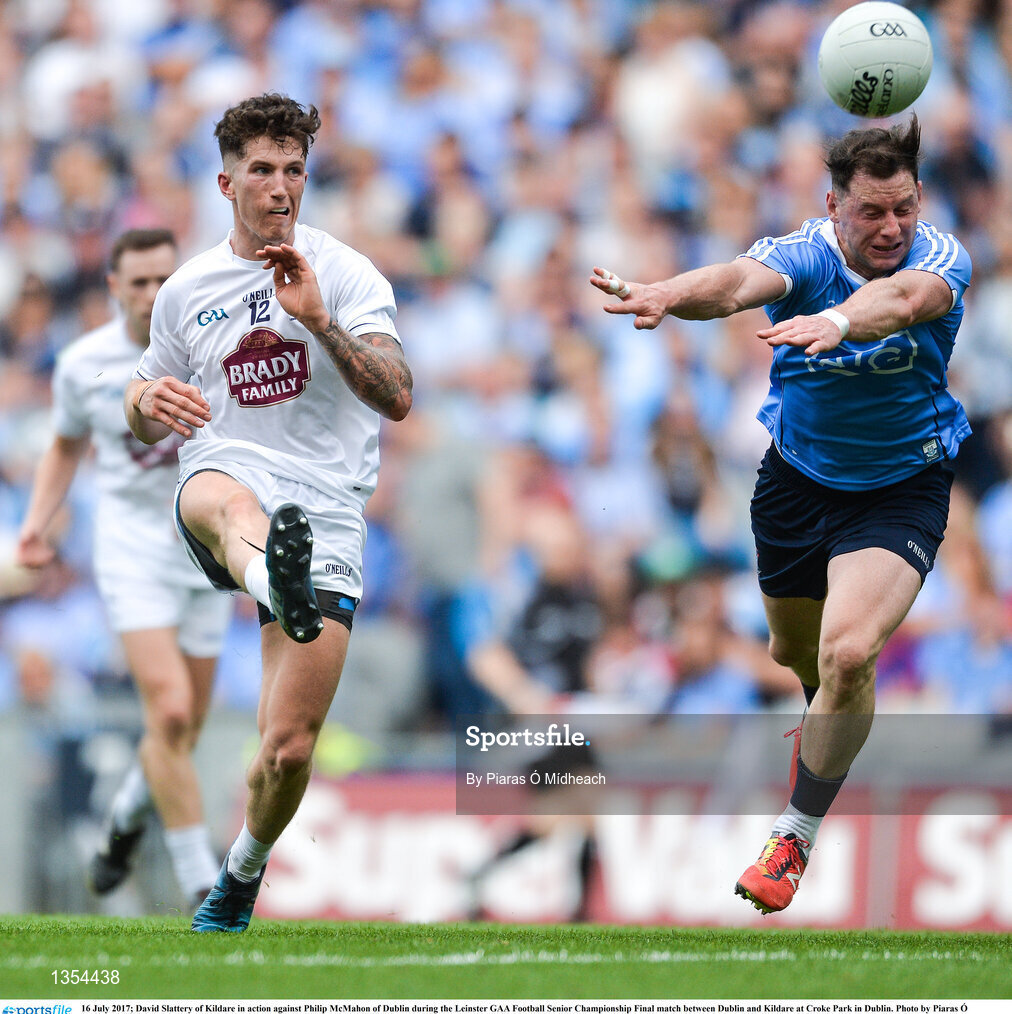 16 July 2017; David Slattery of Kildare in action against Philip McMahon of Dublin during the Leinster GAA Football Senior Championship Final match between Dublin and Kildare at Croke Park in Dublin. Photo by Piaras Ó Mídheach/Sportsfile