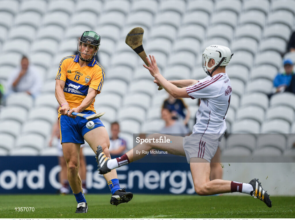 22 July 2017; Gary Cooney of Clare in action against Darach Fahy of Galway during the Electric Ireland GAA Hurling All-Ireland Minor Championship Quarter-Final between Clare and Galway at Páirc Uí Chaoimh in Cork. Photo by Ray McManus/Sportsfile