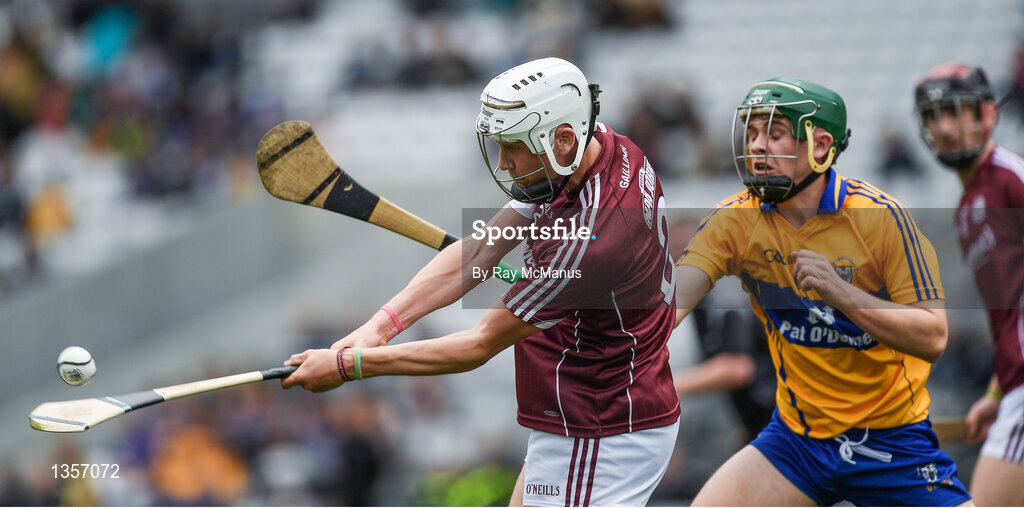 22 July 2017; Darren Morrissey of Galway in action against Riain Considine of Clare during the Electric Ireland GAA Hurling All-Ireland Minor Championship Quarter-Final between Clare and Galway at Páirc Uí Chaoimh in Cork. Photo by Ray McManus/Sportsfile