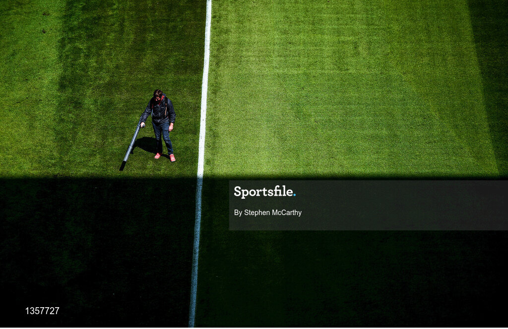 23 July 2017; Páirc Uí Chaoimh groundstaff prepare the pitch during the GAA Hurling All-Ireland Senior Championship Quarter-Final match between Wexford and Waterford at Páirc Uí Chaoimh in Cork. Photo by Stephen McCarthy/Sportsfile