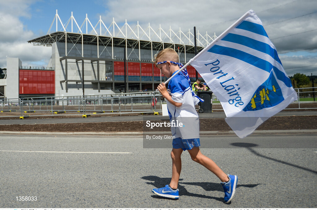 23 July 2017; A young Waterford supporter makes his way to the stadium ahead of the GAA Hurling All-Ireland Senior Championship Quarter-Final match between Wexford and Waterford at Páirc Uí Chaoimh in Cork. Photo by Cody Glenn/Sportsfile