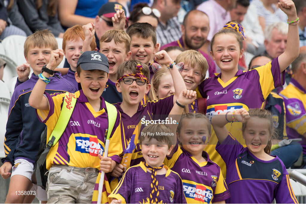 23 July 2017; Wexford supporters from the Kilanerin GAA Club cheer on their team before the GAA Hurling All-Ireland Senior Championship Quarter-Final match between Wexford and Waterford at Páirc Uí Chaoimh in Cork. Photo by Ray McManus/Sportsfile