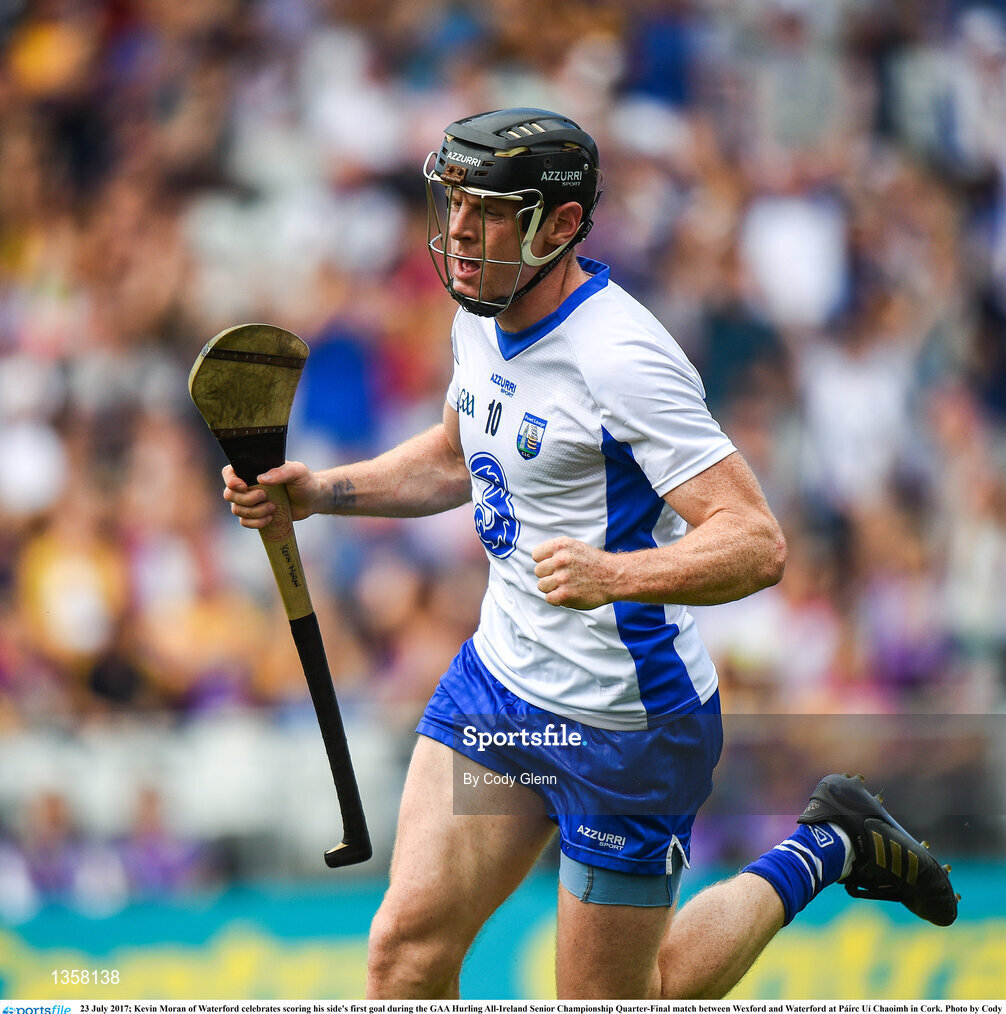 23 July 2017; Kevin Moran of Waterford celebrates scoring his side's first goal during the GAA Hurling All-Ireland Senior Championship Quarter-Final match between Wexford and Waterford at Páirc Uí Chaoimh in Cork. Photo by Cody Glenn/Sportsfile