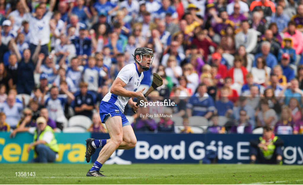 23 July 2017; Kevin Moran of Waterford watches his shot hit the back of the net to score a goal in the 37th minute during the GAA Hurling All-Ireland Senior Championship Quarter-Final match between Wexford and Waterford at Páirc Uí Chaoimh in Cork. Photo by Ray McManus/Sportsfile