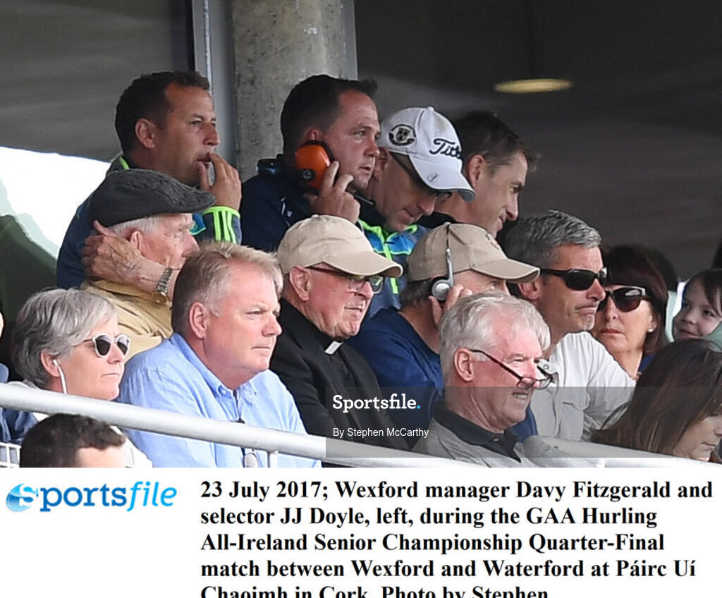 23 July 2017; Wexford manager Davy Fitzgerald and selector JJ Doyle, left, during the GAA Hurling All-Ireland Senior Championship Quarter-Final match between Wexford and Waterford at Páirc Uí Chaoimh in Cork. Photo by Stephen McCarthy/Sportsfile