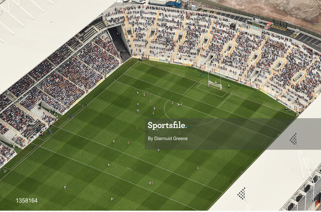 23 July 2017; An aerial view of Páirc Ui Chaoimh as Kevin Moran of Waterford takes on David Redmond of Wexford during the GAA Hurling All-Ireland Senior Championship Quarter-Final match between Wexford and Waterford at Páirc Uí Chaoimh in Cork. Photo by Diarmuid Greene/Sportsfile