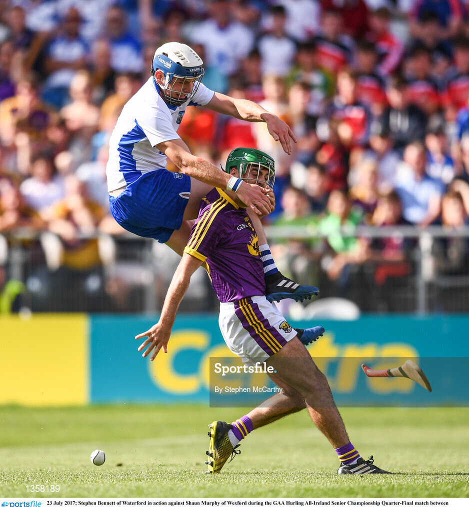 23 July 2017; Stephen Bennett of Waterford in action against Shaun Murphy of Wexford during the GAA Hurling All-Ireland Senior Championship Quarter-Final match between Wexford and Waterford at Páirc Uí Chaoimh in Cork. Photo by Stephen McCarthy/Sportsfile