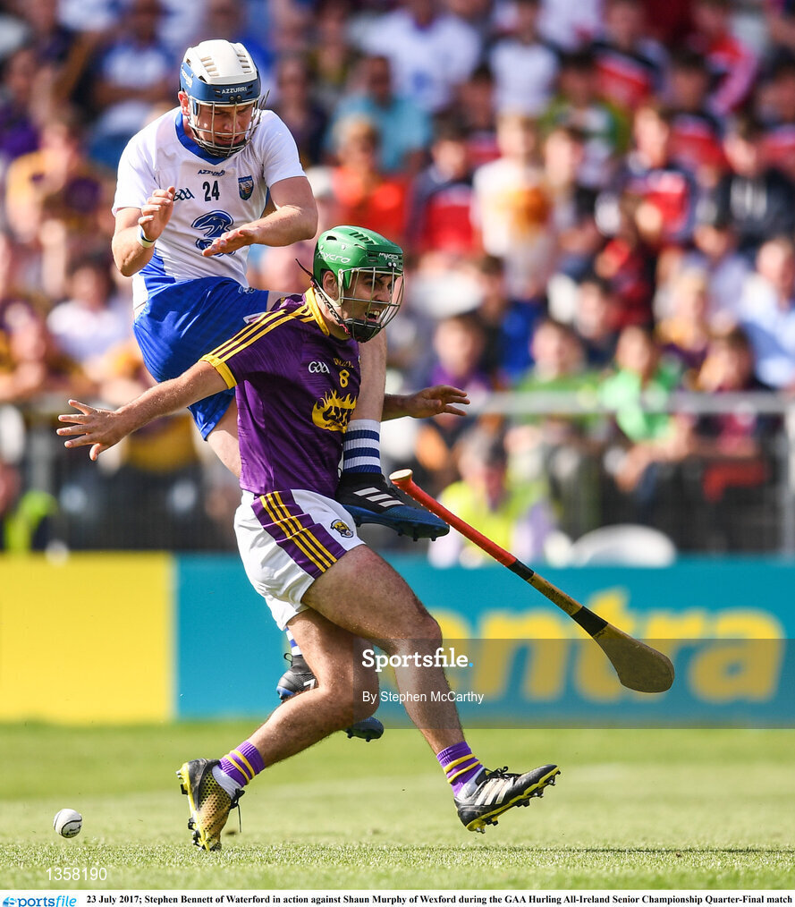 23 July 2017; Stephen Bennett of Waterford in action against Shaun Murphy of Wexford during the GAA Hurling All-Ireland Senior Championship Quarter-Final match between Wexford and Waterford at Páirc Uí Chaoimh in Cork. Photo by Stephen McCarthy/Sportsfile