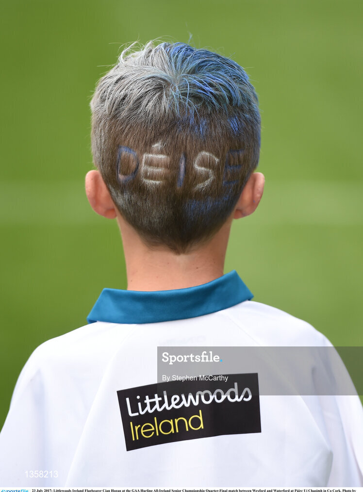 23 July 2017; Littlewoods Ireland Flagbearer Cian Hogan at the GAA Hurling All-Ireland Senior Championship Quarter-Final match between Wexford and Waterford at Páirc Uí Chaoimh in Co Cork. Photo by Stephen McCarthy/Sportsfile