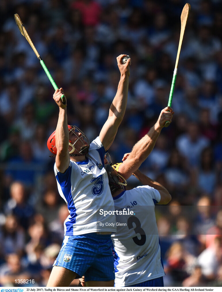 23 July 2017; Tadhg de Búrca and Shane Fives of Waterford in action against Jack Guiney of Wexford during the GAA Hurling All-Ireland Senior Championship Quarter-Final match between Wexford and Waterford at Páirc Uí Chaoimh in Cork. Photo by Cody Glenn/Sportsfile