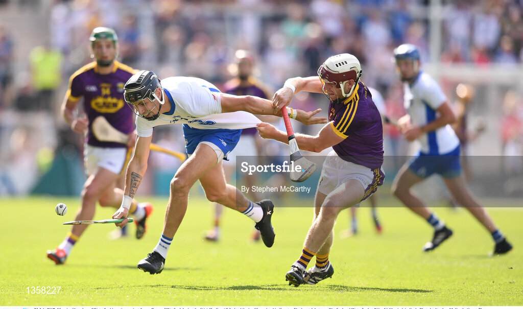 23 July 2017; Maurice Shanahan of Waterford in action against James Breen of Wexford during the GAA Hurling All-Ireland Senior Championship Quarter-Final match between Wexford and Waterford at Páirc Uí Chaoimh in Cork. Photo by Stephen McCarthy/Sportsfile