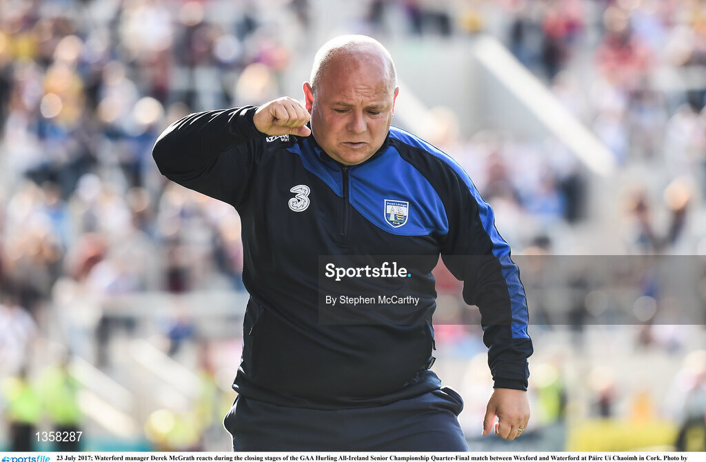 23 July 2017; Waterford manager Derek McGrath reacts during the closing stages of the GAA Hurling All-Ireland Senior Championship Quarter-Final match between Wexford and Waterford at Páirc Uí Chaoimh in Cork. Photo by Stephen McCarthy/Sportsfile