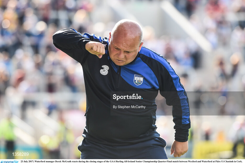 23 July 2017; Waterford manager Derek McGrath reacts during the closing stages of the GAA Hurling All-Ireland Senior Championship Quarter-Final match between Wexford and Waterford at Páirc Uí Chaoimh in Cork. Photo by Stephen McCarthy/Sportsfile