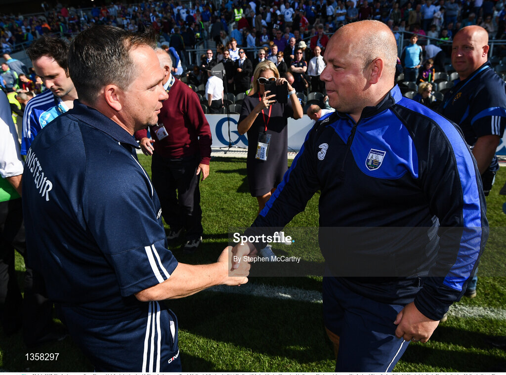 23 July 2017; Wexford manager Davy Fitzgerald, left, shakes hands with Waterford manager Derek McGrath following the GAA Hurling All-Ireland Senior Championship Quarter-Final match between Wexford and Waterford at Páirc Uí Chaoimh in Cork. Photo by Stephen McCarthy/Sportsfile