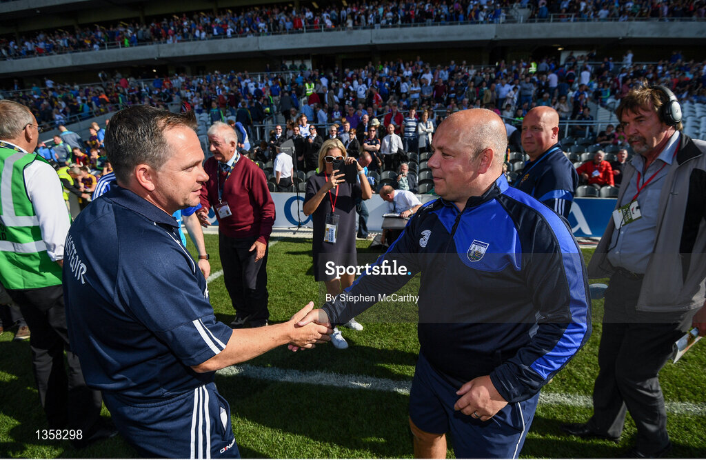 23 July 2017; Wexford manager Davy Fitzgerald, left, shakes hands with Waterford manager Derek McGrath following the GAA Hurling All-Ireland Senior Championship Quarter-Final match between Wexford and Waterford at Páirc Uí Chaoimh in Cork. Photo by Stephen McCarthy/Sportsfile