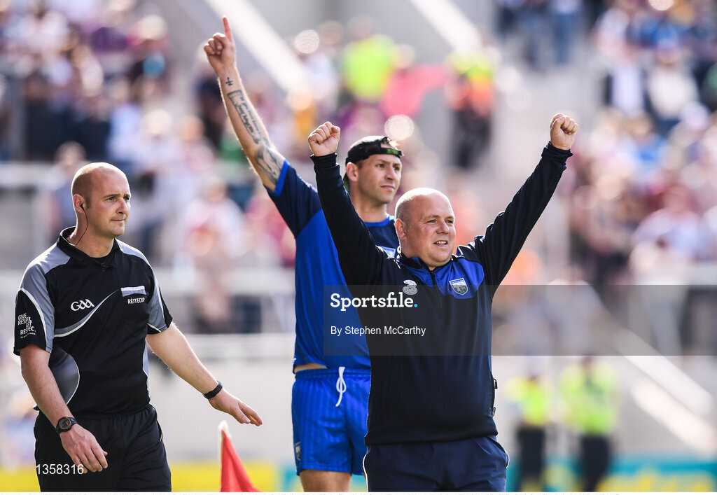 23 July 2017; Waterford manager Derek McGrath and selector Dan Shanahan celebrate a late point during the GAA Hurling All-Ireland Senior Championship Quarter-Final match between Wexford and Waterford at Páirc Uí Chaoimh in Cork. Photo by Stephen McCarthy/Sportsfile
