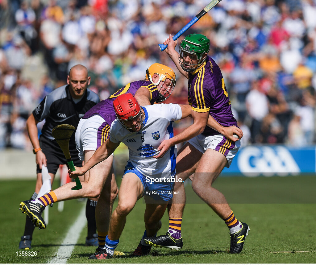 23 July 2017; Tadhg de Búrca of Waterford is tackled by Podge Doran, left, and Simon Donohoe of Wexford during the GAA Hurling All-Ireland Senior Championship Quarter-Final match between Wexford and Waterford at Páirc Uí Chaoimh in Cork. Photo by Ray McManus/Sportsfile