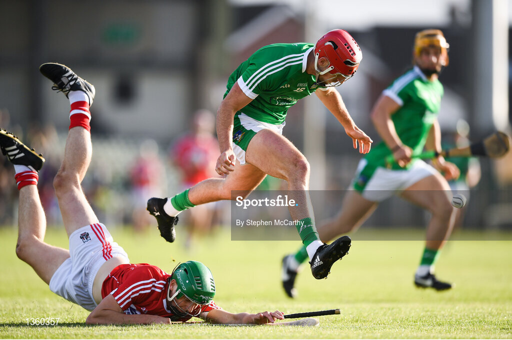 26 July 2017; Barry Nash of Limerick in action against John Cashman of Cork during the Bord Gáis Energy Munster GAA Hurling Under 21 Championship Final match between Limerick and Cork at the Gaelic Grounds in Limerick. Photo by Stephen McCarthy/Sportsfile