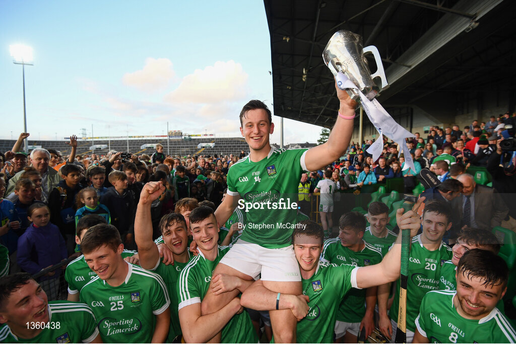 26 July 2017; Limerick captain Tom Morrissey celebrates with the cup following during the Bord Gáis Energy Munster GAA Hurling Under 21 Championship Final match between Limerick and Cork at the Gaelic Grounds in Limerick. Photo by Stephen McCarthy/Sportsfile