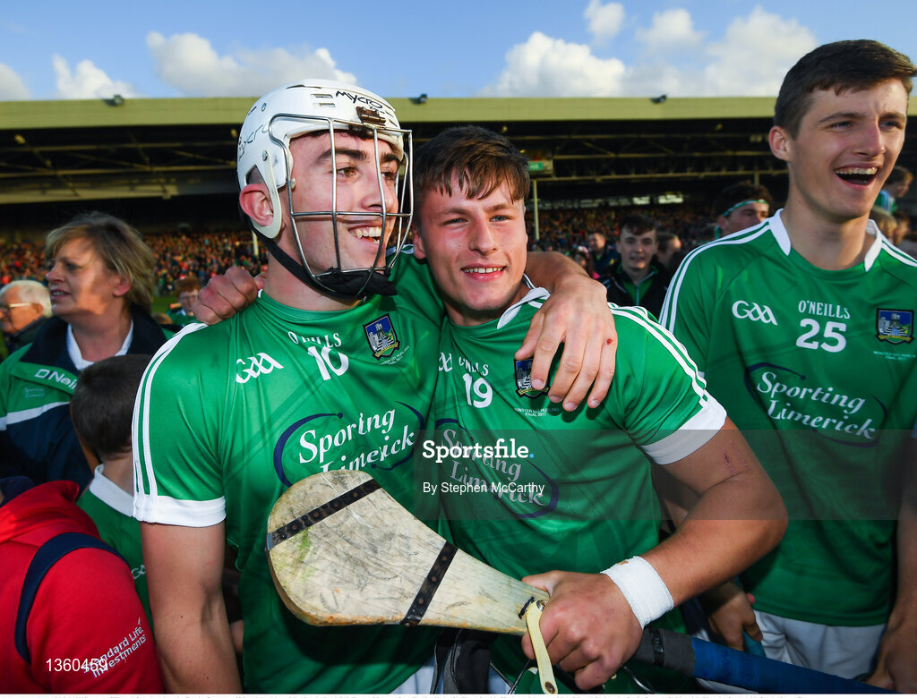 26 July 2017; Aaron Gillane, left, and Andrew La Touche Cosgrave of Limerick celebrate following the Bord Gáis Energy Munster GAA Hurling Under 21 Championship Final match between Limerick and Cork at the Gaelic Grounds in Limerick. Photo by Stephen McCarthy/Sportsfile