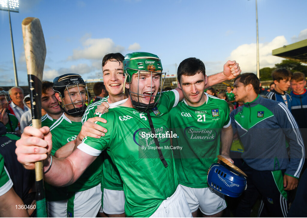 26 July 2017; Ronan Lynch and Conor McSweeney, right, of Limerick celebrate following the Bord Gáis Energy Munster GAA Hurling Under 21 Championship Final match between Limerick and Cork at the Gaelic Grounds in Limerick. Photo by Stephen McCarthy/Sportsfile