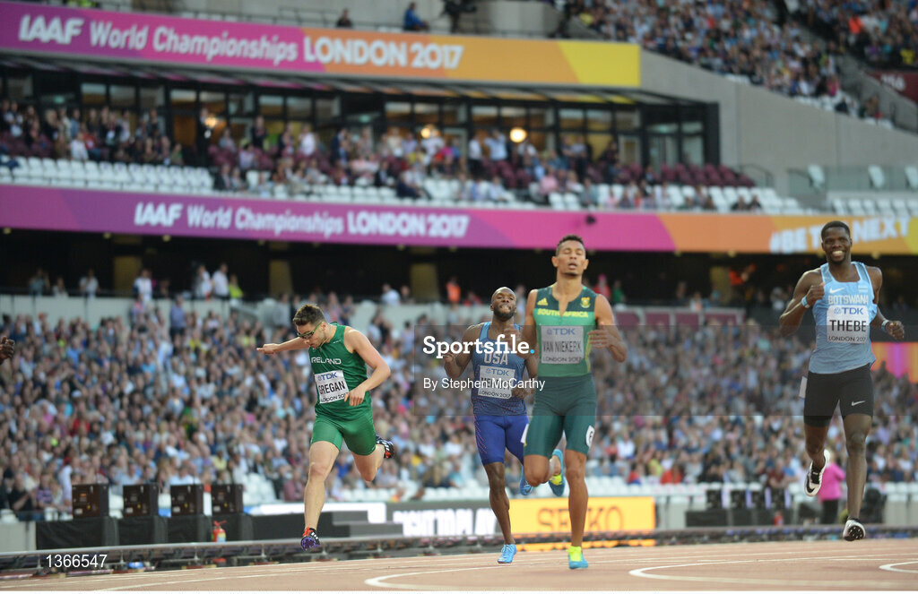6 August 2017; Brian Gregan of Ireland crosses the line in his semi-final of the Men's 400m event during day three of the 16th IAAF World Athletics Championships at the London Stadium in London, England. Photo by Stephen McCarthy/Sportsfile