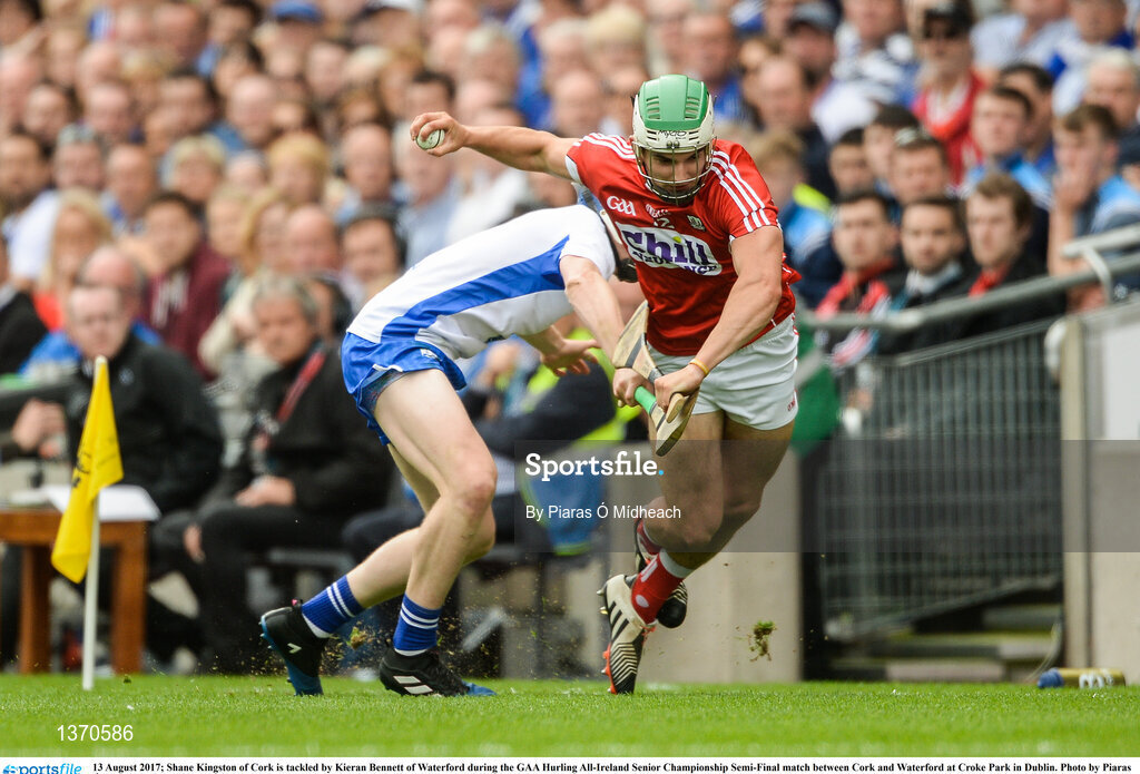 13 August 2017; Shane Kingston of Cork is tackled by Kieran Bennett of Waterford during the GAA Hurling All-Ireland Senior Championship Semi-Final match between Cork and Waterford at Croke Park in Dublin. Photo by Piaras Ó Mídheach/Sportsfile