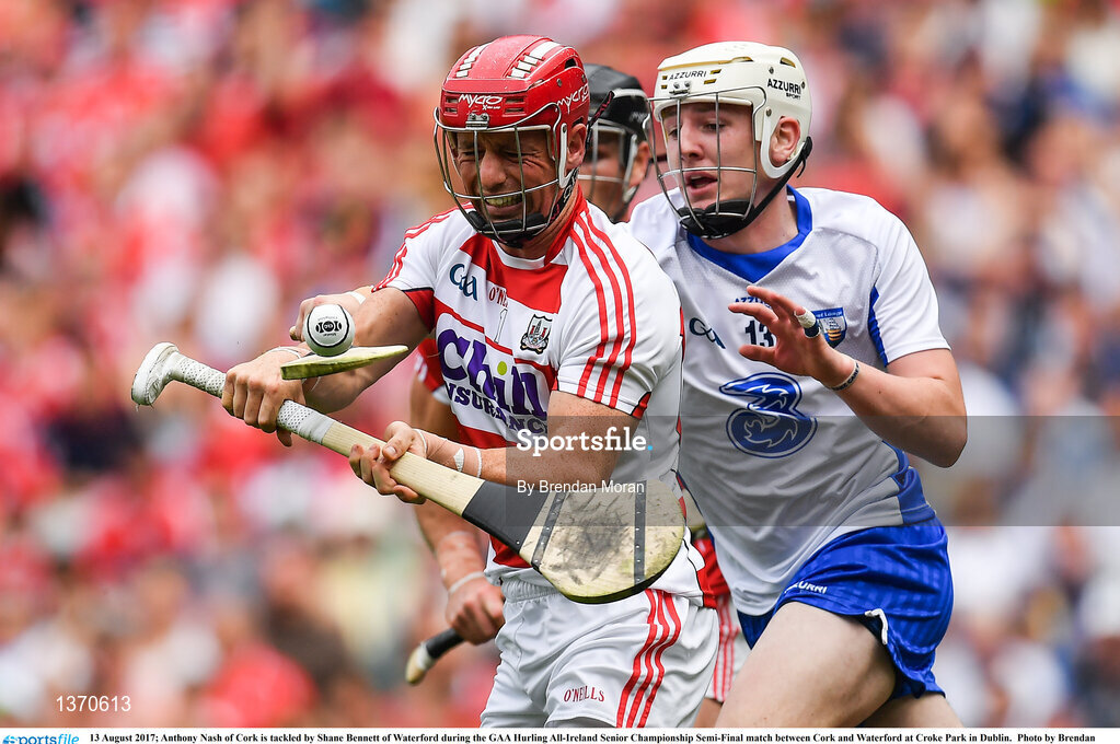 13 August 2017; Anthony Nash of Cork is tackled by Shane Bennett of Waterford during the GAA Hurling All-Ireland Senior Championship Semi-Final match between Cork and Waterford at Croke Park in Dublin. Photo by Brendan Moran/Sportsfile