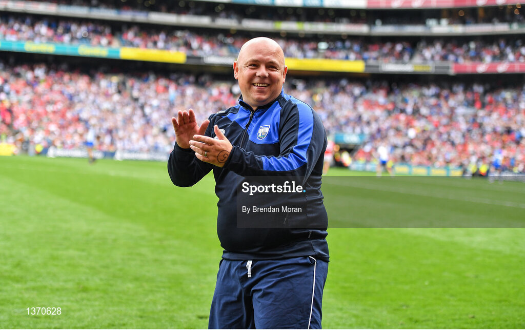 13 August 2017; Waterford manager Derek McGrath celebrates after his side's fourth goal during the GAA Hurling All-Ireland Senior Championship Semi-Final match between Cork and Waterford at Croke Park in Dublin. Photo by Brendan Moran/Sportsfile