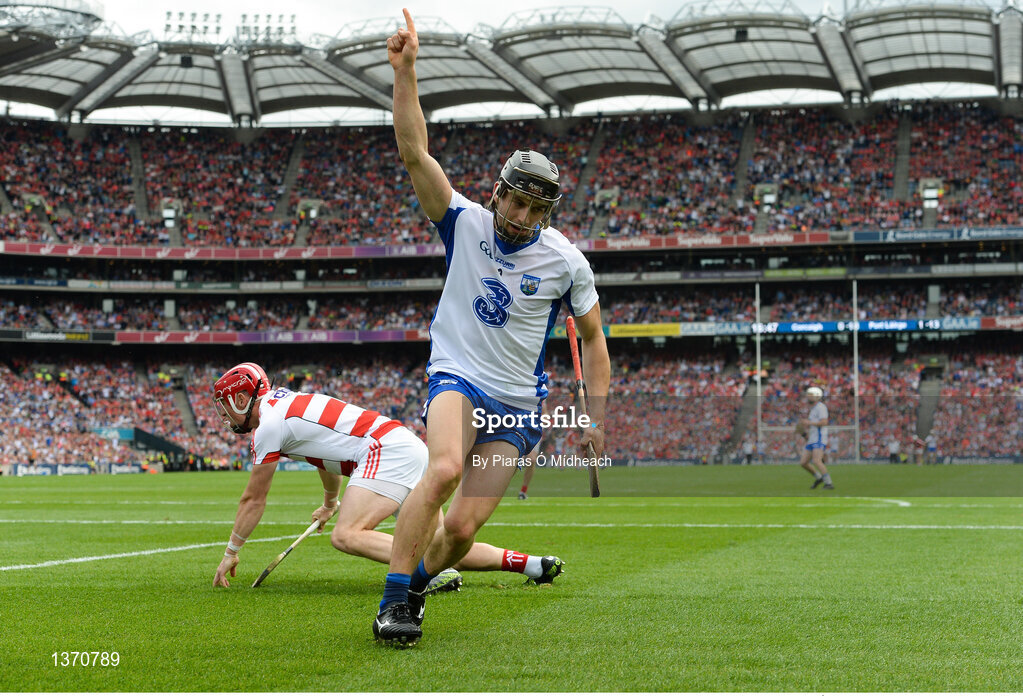 13 August 2017; Jamie Barron of Waterford celebrates scoring his side's second goal as Cork goalkeeper Anthony Nash looks on during the GAA Hurling All-Ireland Senior Championship Semi-Final match between Cork and Waterford at Croke Park in Dublin. Photo by Piaras Ó Mídheach/Sportsfile