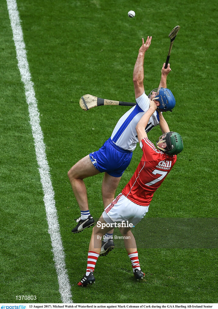 13 August 2017; Michael Walsh of Waterford in action against Mark Coleman of Cork during the GAA Hurling All-Ireland Senior Championship Semi-Final match between Cork and Waterford at Croke Park in Dublin. Photo by Daire Brennan/Sportsfile