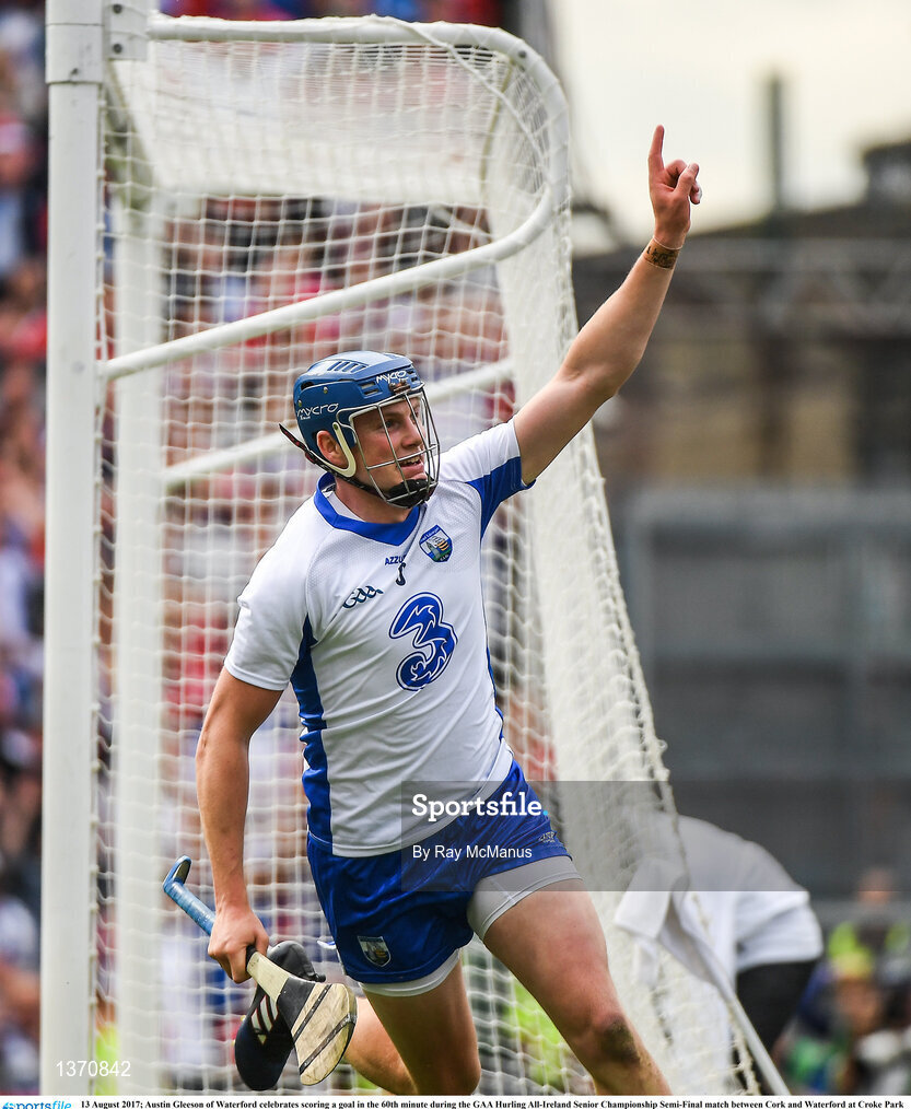 13 August 2017; Austin Gleeson of Waterford celebrates scoring a goal in the 60th minute during the GAA Hurling All-Ireland Senior Championship Semi-Final match between Cork and Waterford at Croke Park in Dublin. Photo by Ray McManus/Sportsfile