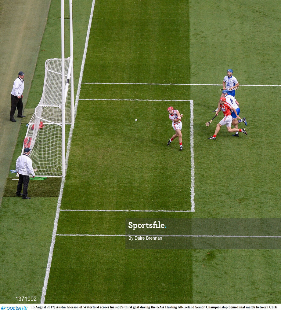 13 August 2017; Austin Gleeson of Waterford scores his side's third goal during the GAA Hurling All-Ireland Senior Championship Semi-Final match between Cork and Waterford at Croke Park in Dublin. Photo by Daire Brennan/Sportsfile