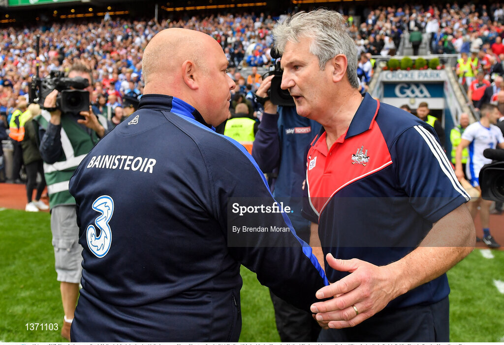 13 August 2017; Waterford manager Derek McGrath, left, shakes hands with Cork manager Kieran Kingston after the GAA Hurling All-Ireland Senior Championship Semi-Final match between Cork and Waterford at Croke Park in Dublin. Photo by Brendan Moran/Sportsfile