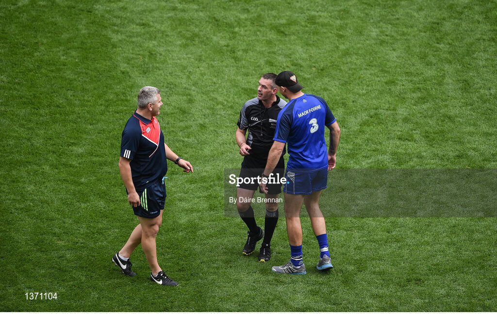 13 August 2017; Referee James Owens has words with Cork selector Diarmuid O'Sullivan and Waterford selector Dan Shanahan during the GAA Hurling All-Ireland Senior Championship Semi-Final match between Cork and Waterford at Croke Park in Dublin. Photo by Daire Brennan/Sportsfile