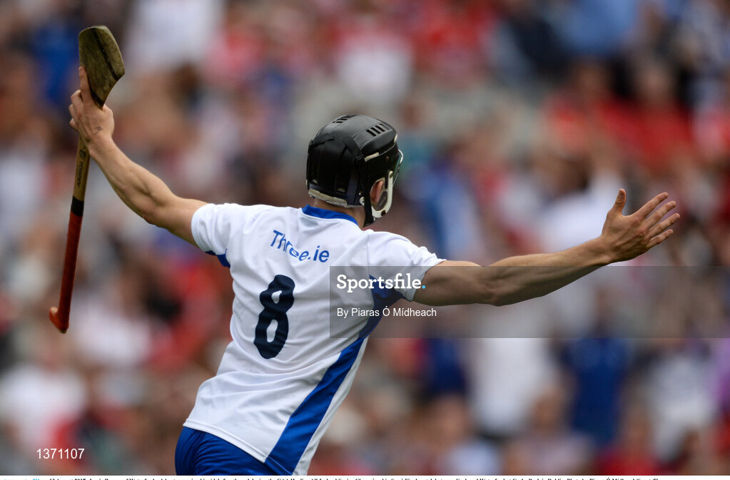 13 August 2017; Jamie Barron of Waterford celebrates scoring his side's fourth goal during the GAA Hurling All-Ireland Senior Championship Semi-Final match between Cork and Waterford at Croke Park in Dublin. Photo by Piaras Ó Mídheach/Sportsfile