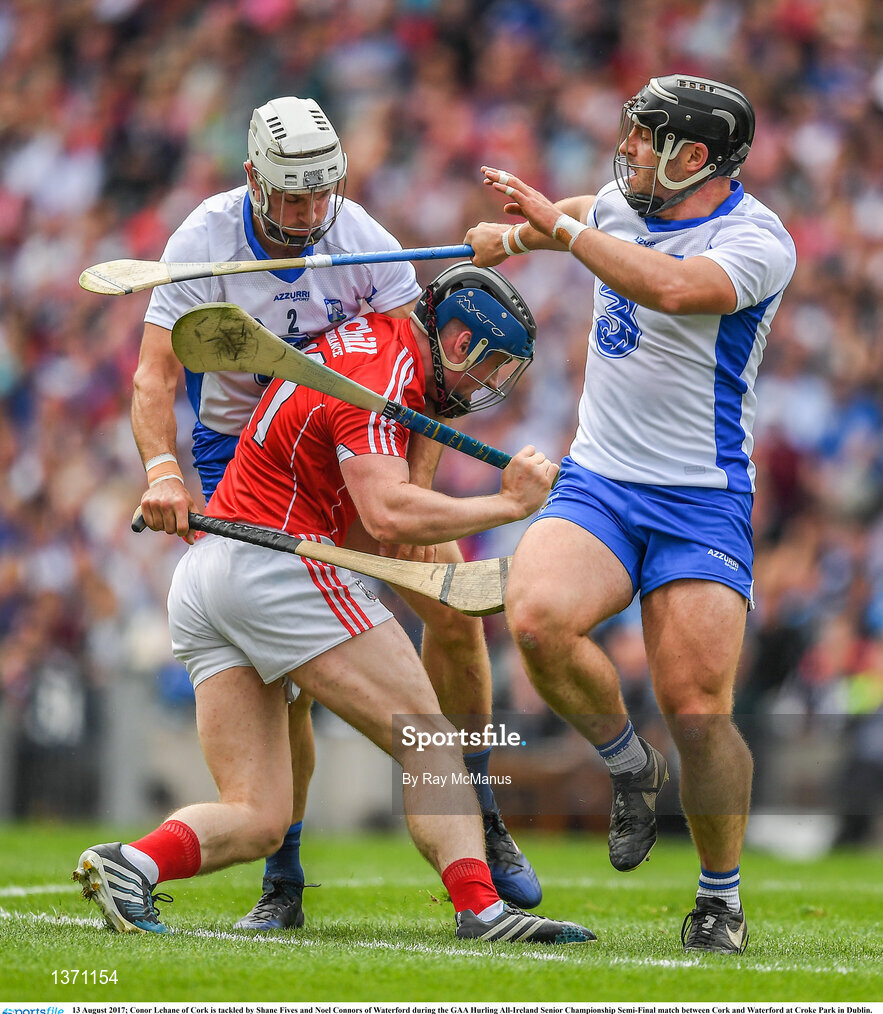 13 August 2017; Conor Lehane of Cork is tackled by Shane Fives and Noel Connors of Waterford during the GAA Hurling All-Ireland Senior Championship Semi-Final match between Cork and Waterford at Croke Park in Dublin. Photo by Ray McManus/Sportsfile