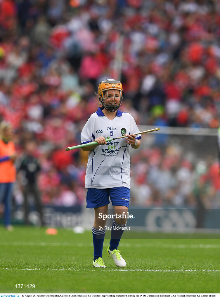 13 August 2017; Emily Ní Mháirtín, Gaelscoil Chill Mhantáin, Co Wicklow, representing Waterford, during the INTO Cumann na mBunscol GAA Respect Exhibition Go Games at half time during the GAA Hurling All-Ireland Senior Championship Semi-Final match between Cork and Waterford at Croke Park in Dublin. Photo by Ray McManus/Sportsfile