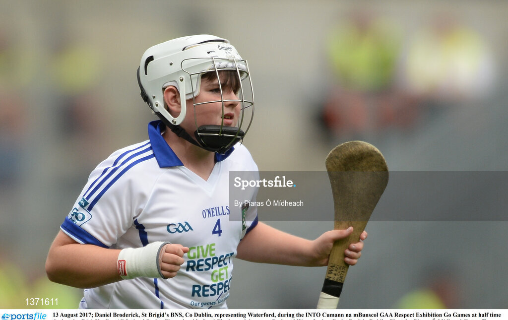 13 August 2017; Daniel Broderick, St Brigid’s BNS, Co Dublin, representing Waterford, during the INTO Cumann na mBunscol GAA Respect Exhibition Go Games at half time during the GAA Hurling All-Ireland Senior Championship Semi-Final match between Cork and Waterford at Croke Park in Dublin. Photo by Piaras Ó Mídheach/Sportsfile