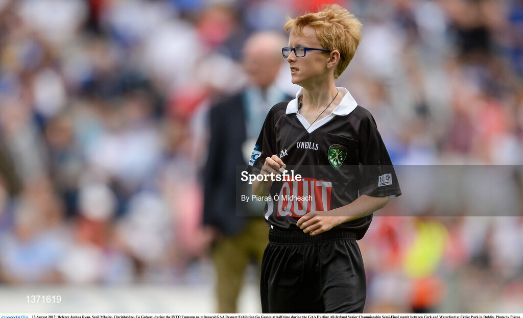 13 August 2017; Referee Joshua Ryan, Scoil Mhuire, Clarinbridge, Co Galway, during the INTO Cumann na mBunscol GAA Respect Exhibition Go Games at half time during the GAA Hurling All-Ireland Senior Championship Semi-Final match between Cork and Waterford at Croke Park in Dublin. Photo by Piaras Ó Mídheach/Sportsfile