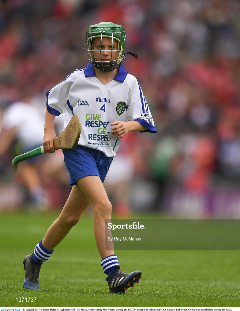 13 August 2017; Saoirse Delaney, Aghamore NS, Co Mayo, representing Waterford, during the INTO Cumann na mBunscol GAA Respect Exhibition Go Games at half time during the GAA Hurling All-Ireland Senior Championship Semi-Final match between Cork and Waterford at Croke Park in Dublin. Photo by Ray McManus/Sportsfile