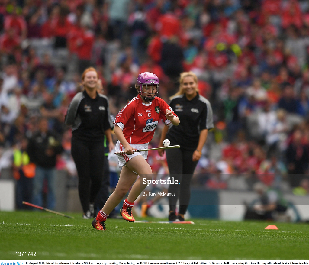 13 August 2017; Niamh Gentleman, Glenderry NS, Co Kerry, representing Cork, during the INTO Cumann na mBunscol GAA Respect Exhibition Go Games at half time during the GAA Hurling All-Ireland Senior Championship Semi-Final match between Cork and Waterford at Croke Park in Dublin. Photo by Ray McManus/Sportsfile