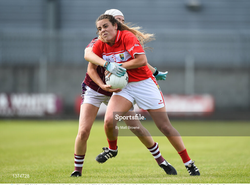 19 August 2017; Orlagh Farmer of Cork in action against Shauna Hayes of Galway during the TG4 Ladies Football All-Ireland Senior Championship Quarter-Final match between Cork and Galway at Cusack Park in Westmeath. Photo by Matt Browne/Sportsfile
