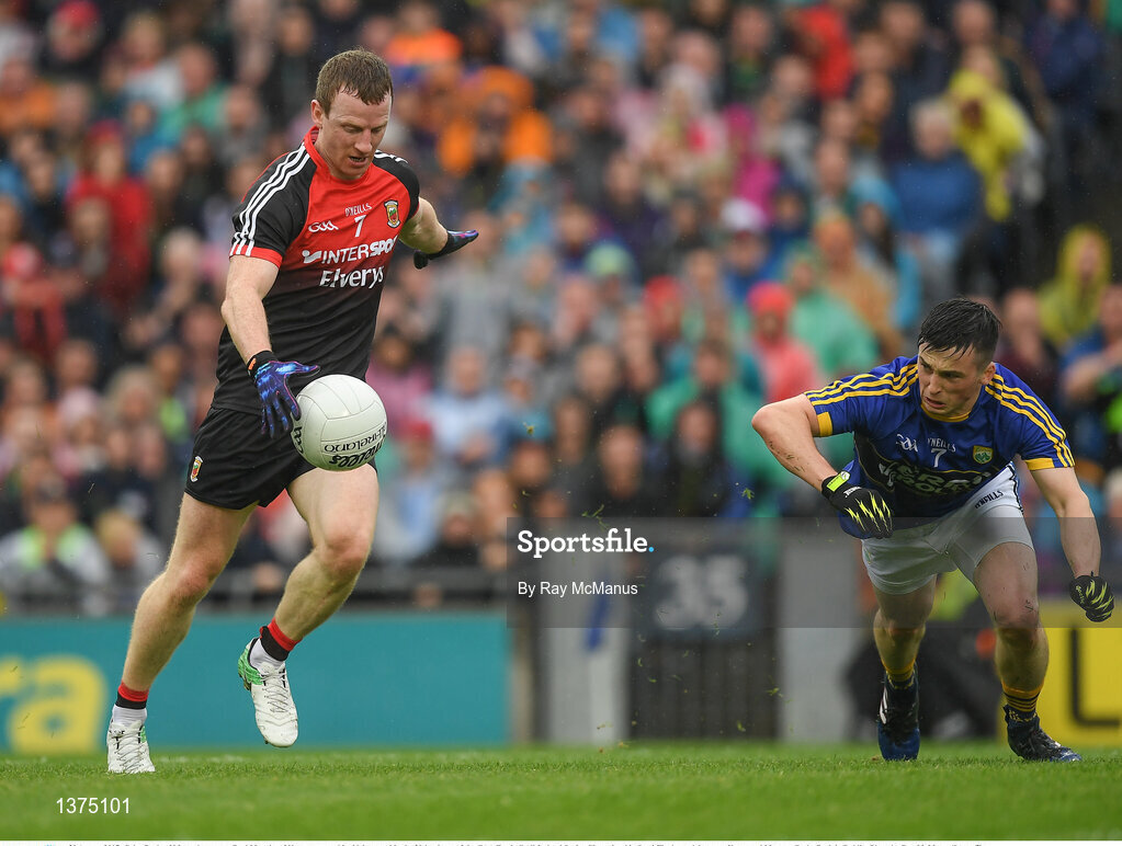 20 August 2017; Colm Boyle of Mayo shoots past Paul Murphy of Kerry to score his side's second goal in the 20th minute of the GAA Football All-Ireland Senior Championship Semi-Final match between Kerry and Mayo at Croke Park in Dublin. Photo by Ray McManus/Sportsfile