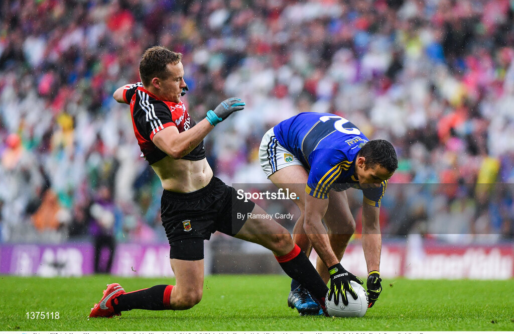 20 August 2017; Andy Moran of Mayo in action against Shane Enright of Kerry during the GAA Football All-Ireland Senior Championship Semi-Final match between Kerry and Mayo at Croke Park in Dublin. Photo by Ramsey Cardy/Sportsfile