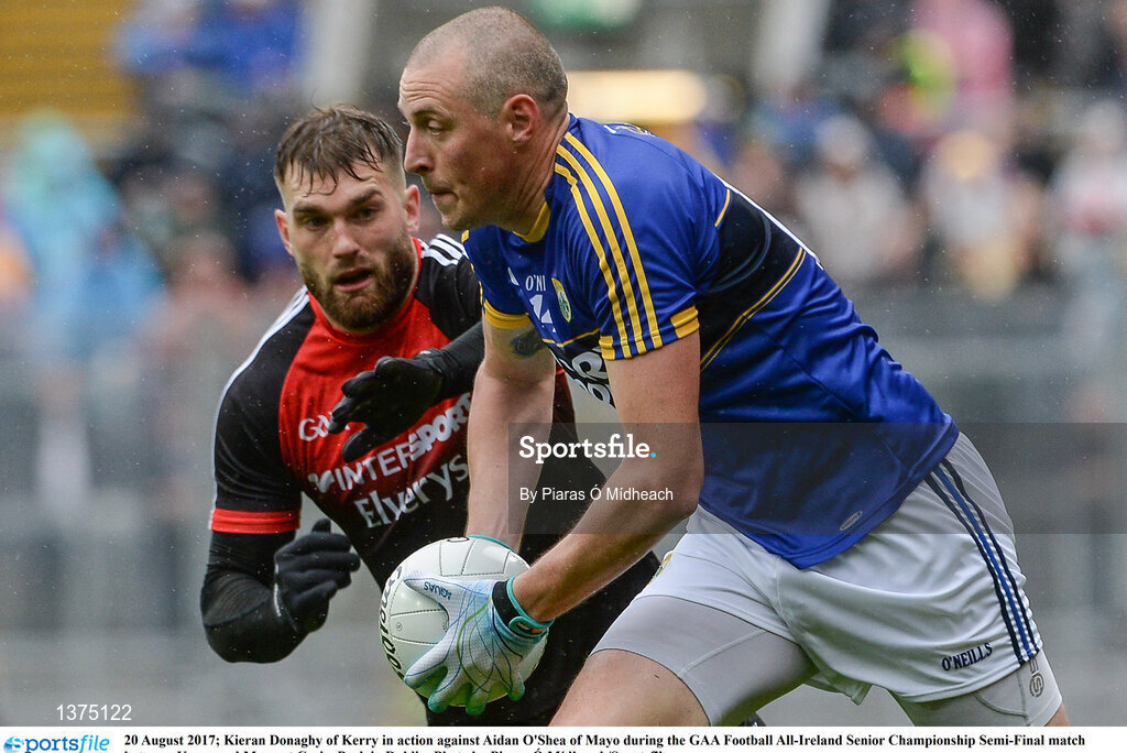 20 August 2017; Kieran Donaghy of Kerry in action against Aidan O'Shea of Mayo during the GAA Football All-Ireland Senior Championship Semi-Final match between Kerry and Mayo at Croke Park in Dublin. Photo by Piaras Ó Mídheach/Sportsfile