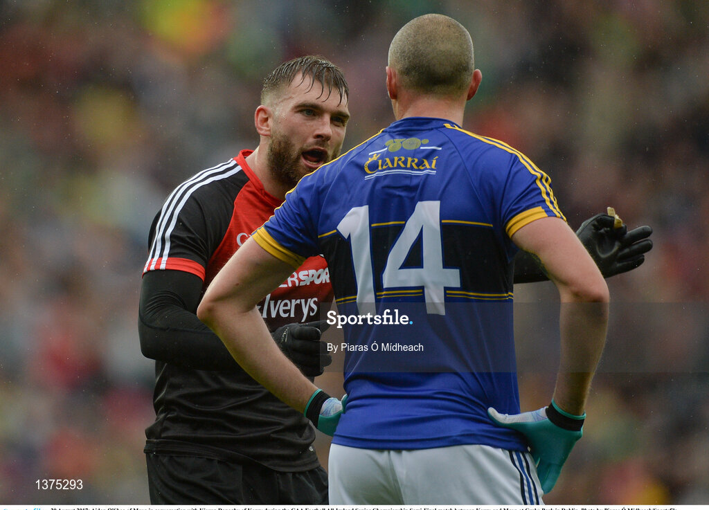 20 August 2017; Aidan O'Shea of Mayo in conversation with Kieran Donaghy of Kerry during the GAA Football All-Ireland Senior Championship Semi-Final match between Kerry and Mayo at Croke Park in Dublin. Photo by Piaras Ó Mídheach/Sportsfile