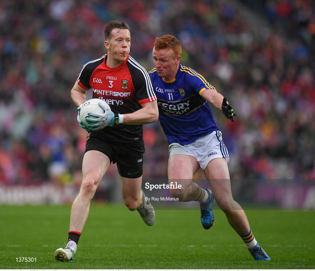 20 August 2017; Donal Vaughan of Mayo in action against Johnny Buckley of Kerry during the GAA Football All-Ireland Senior Championship Semi-Final match between Kerry and Mayo at Croke Park in Dublin. Photo by Ray McManus/Sportsfile
