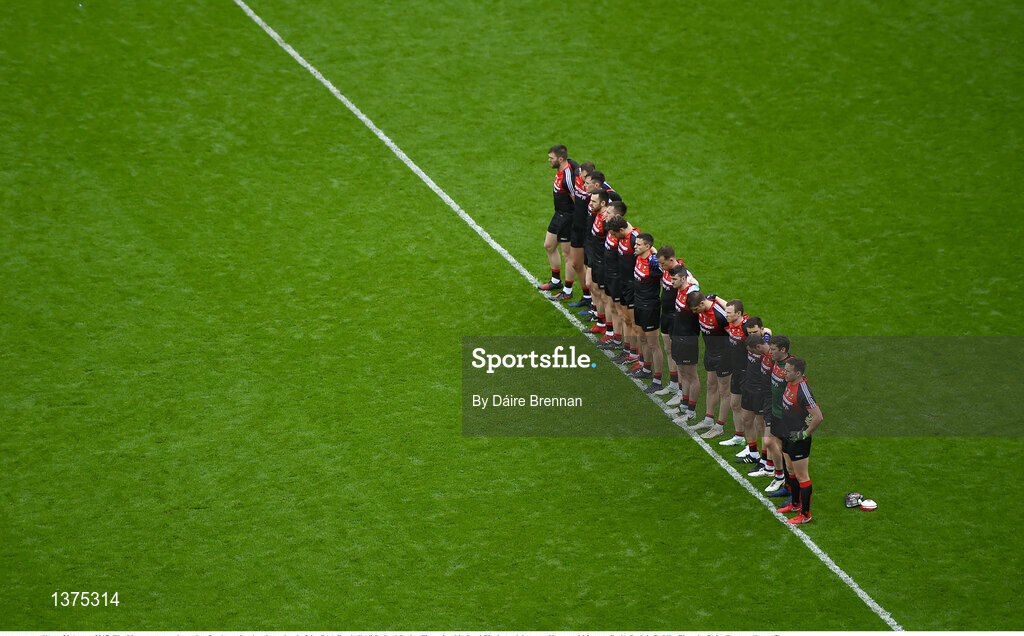 20 August 2017; The Mayo team stand together for the national anthem ahead of the GAA Football All-Ireland Senior Championship Semi-Final match between Kerry and Mayo at Croke Park in Dublin. Photo by Daire Brennan/Sportsfile