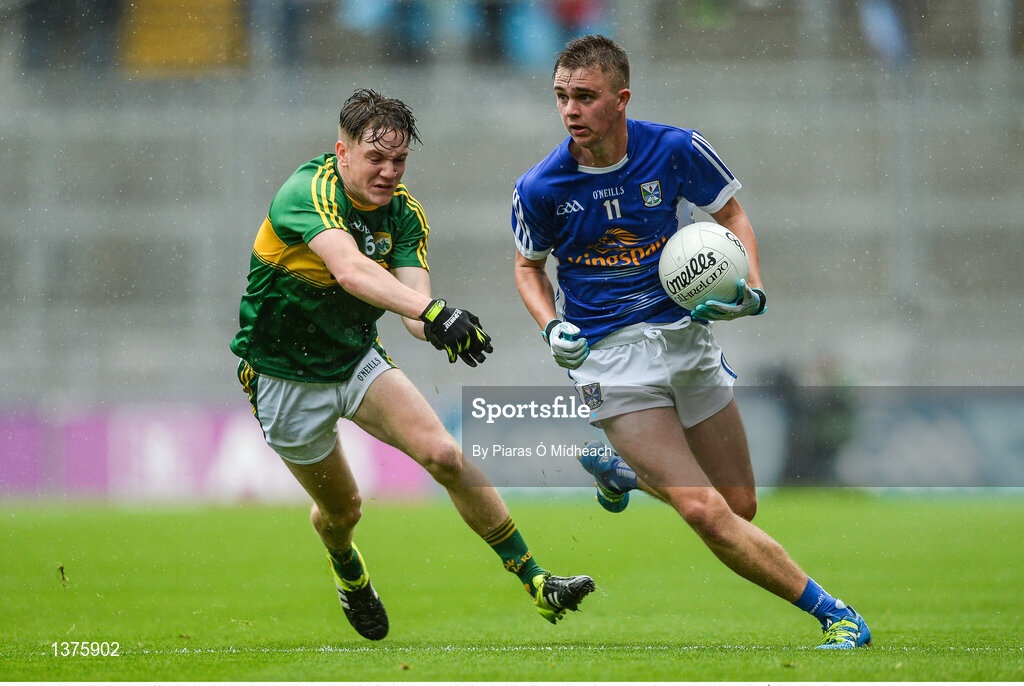 20 August 2017; Cian Madden of Cavan in action against Michael Potts of Kerry during the Electric Ireland GAA Football All-Ireland Minor Championship Semi-Final match between Cavan and Kerry at Croke Park in Dublin. Photo by Piaras Ó Mídheach/Sportsfile